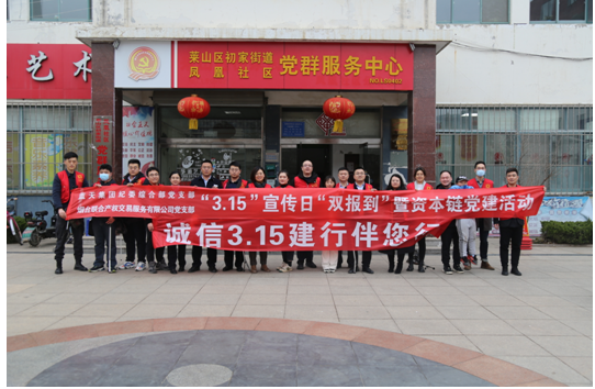 為進(jìn)一步普及社區(qū)群眾消費者權(quán)益知識,增強日常消費、網(wǎng)絡(luò)消費、金融消費的維權(quán)意識。315日下午,藍(lán)天集團紀(jì)委綜合部黨支部和煙臺聯(lián)合產(chǎn)權(quán)交易服務(wù)有限公司黨支部邀請聯(lián)合產(chǎn)權(quán)“資本鏈”黨總支聯(lián)盟單位,以紅色黨建為引領(lǐng),以消費者權(quán)益日為契機,在初家街道鳳凰社區(qū)開展“3.15”宣傳日雙報到暨資本鏈黨建活動。集團黨委委員、聯(lián)合產(chǎn)權(quán)黨支部書記、董事長初志杰同志,集團黨委委員、紀(jì)委書記湯志厚同志,以普通黨員身份參加。