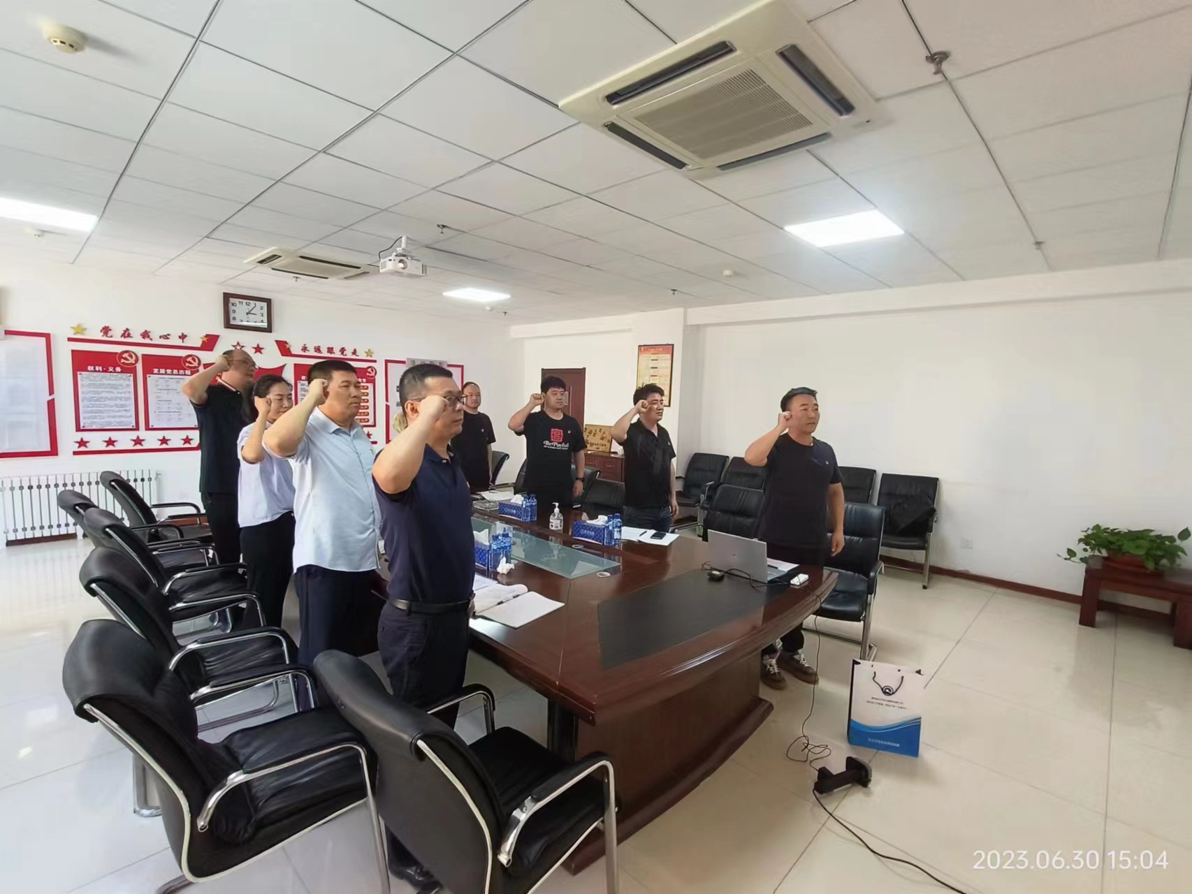 隨后初志杰、韋霖兩位黨員同志過政治生日,組織全體黨員進行入黨宣誓;公示6月份黨費收繳情況;集中收看燈塔大課堂—“基層一線黨員風采”。