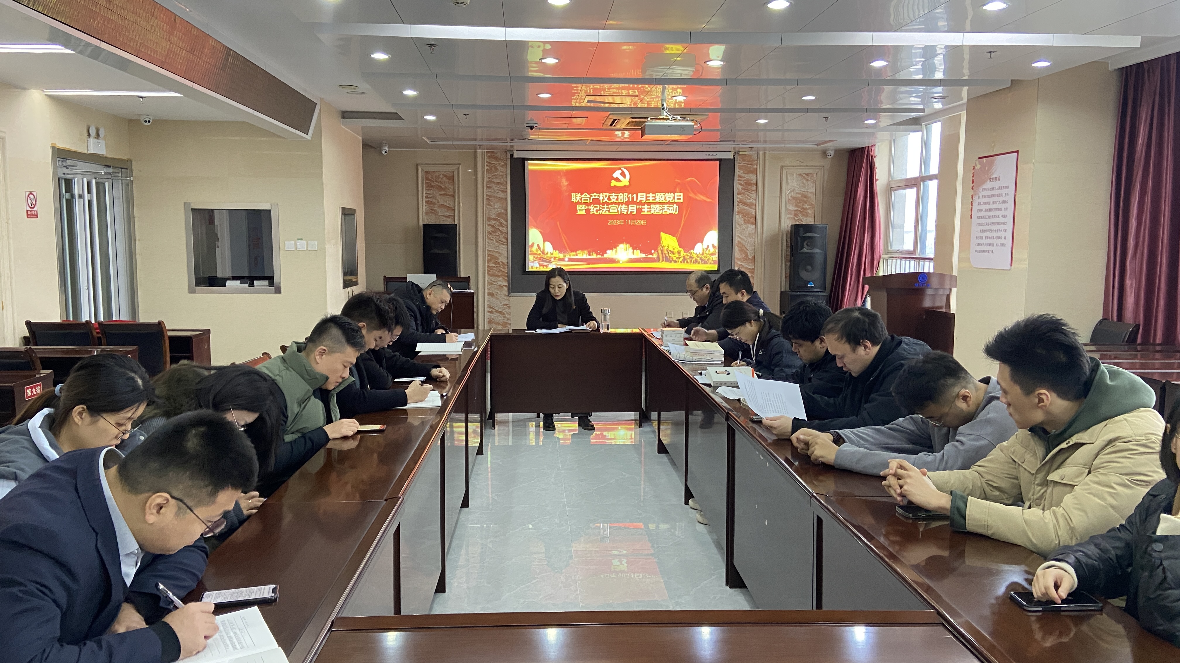 11月29日,聯合產權黨支部開展11月份主題黨日暨“紀法知識自主研學月”主題活動。會前,召開支委會,進行“第一議題”學習研討,對貫徹落實習近平總書記重要指示批示精神情況進行“回頭看”。