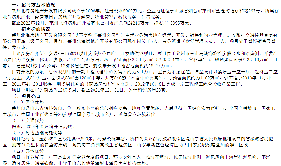 萊州北海房地產(chǎn)開(kāi)發(fā)有限公司100%股權(quán)及債權(quán)