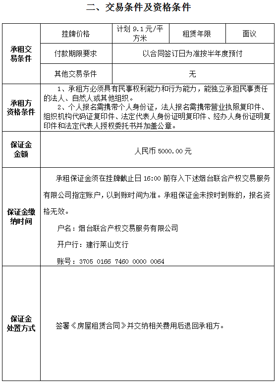 • 保證金支付方式:一次性支付