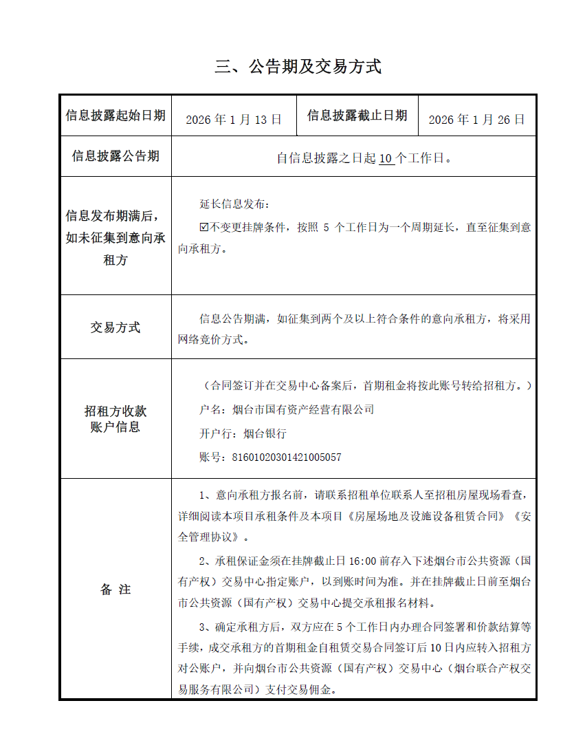 掛牌起止日期:2026年1月13日-2026年3月2日
